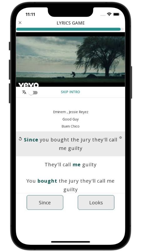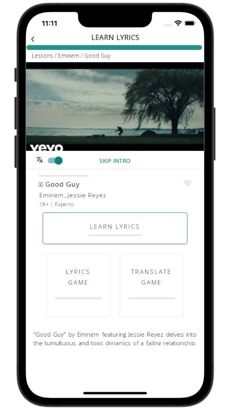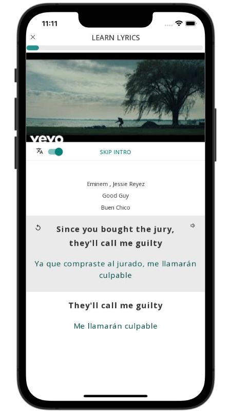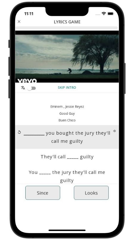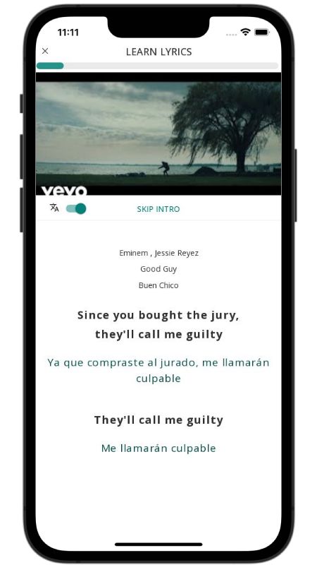 In addition to reading lyric translations, you can now learn English with music and lyrics from your favorite artists.