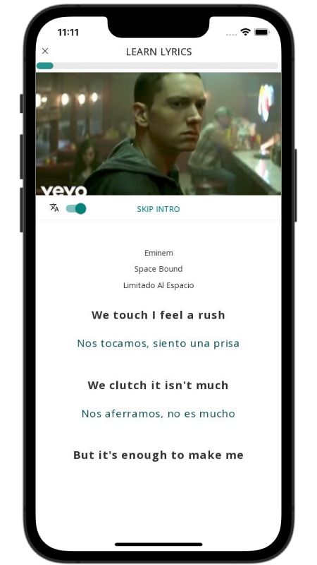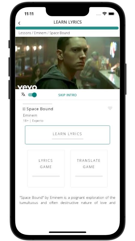 In addition to reading lyric translations, you can now learn English with music and lyrics from your favorite artists.