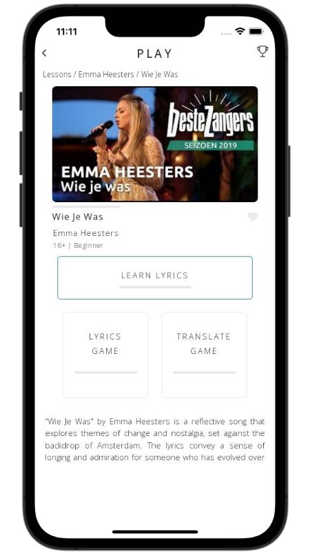 In addition to reading lyric translations, you can now learn Dutch with music and lyrics from your favorite artists.