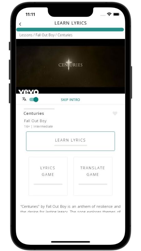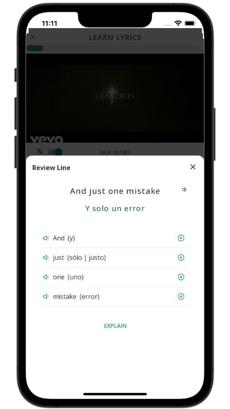 In addition to reading lyric translations, you can now learn English with music and lyrics from your favorite artists.