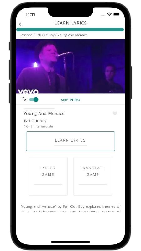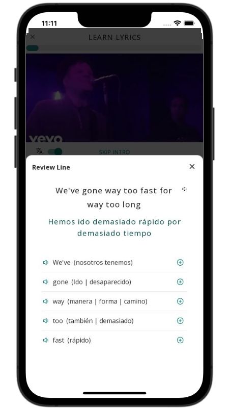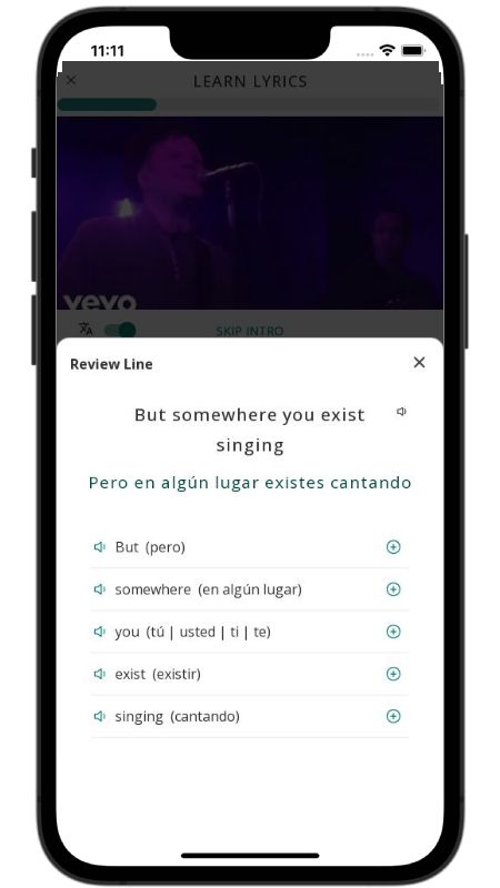 In addition to reading lyric translations, you can now learn English with music and lyrics from your favorite artists.