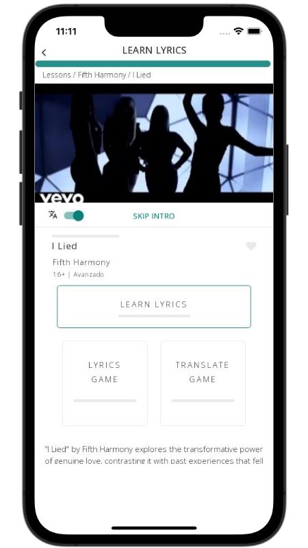 In addition to reading lyric translations, you can now learn English with music and lyrics from your favorite artists.