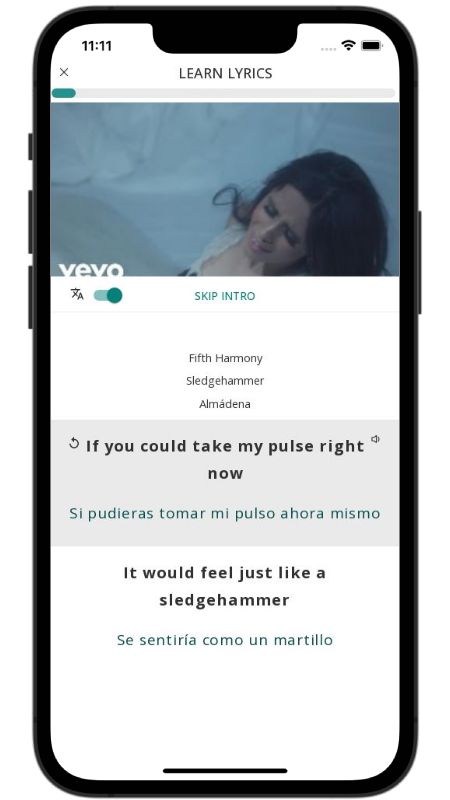 In addition to reading lyric translations, you can now learn English with music and lyrics from your favorite artists.