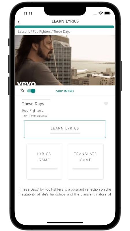 In addition to reading lyric translations, you can now learn English with music and lyrics from your favorite artists.