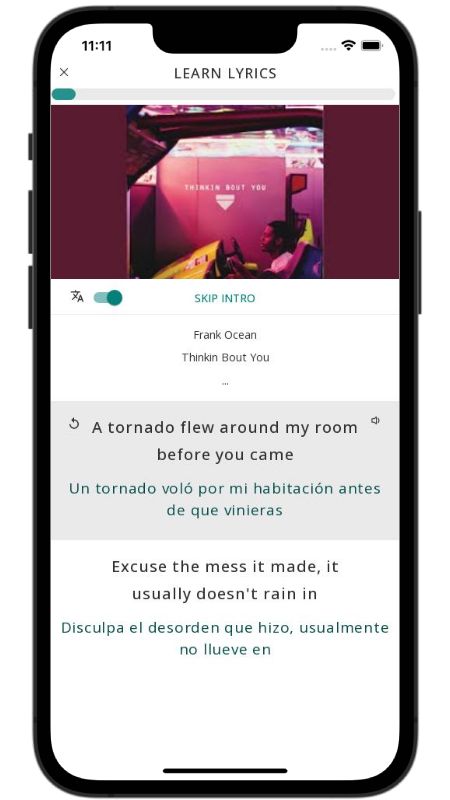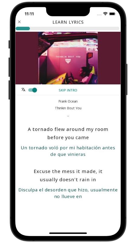 In addition to reading lyric translations, you can now learn English with music and lyrics from your favorite artists.
