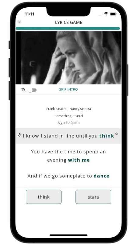 In addition to reading lyric translations, you can now learn English with music and lyrics from your favorite artists.