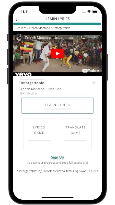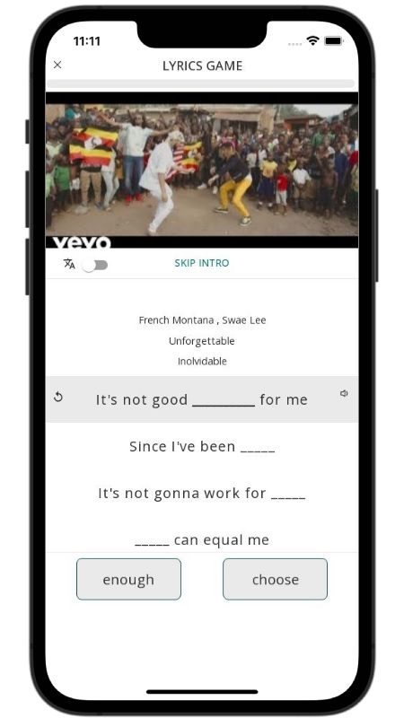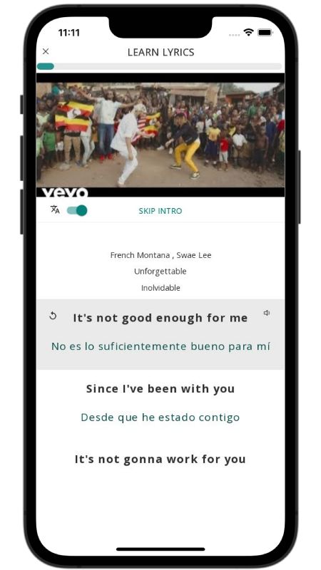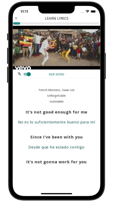 In addition to reading lyric translations, you can now learn English with music and lyrics from your favorite artists.