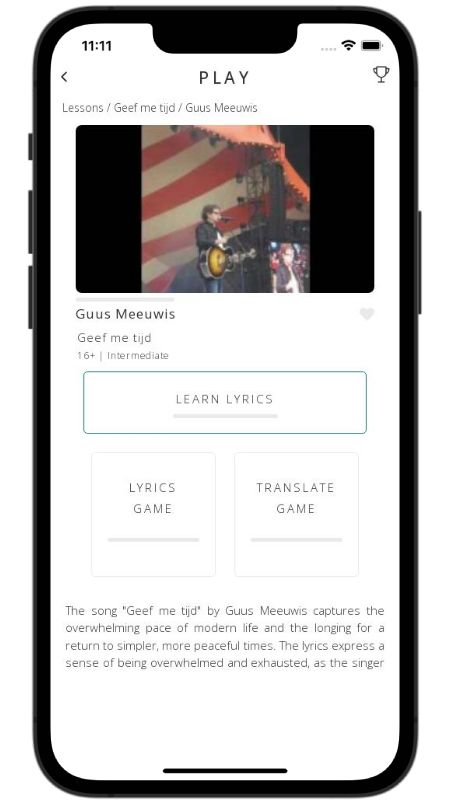 In addition to reading lyric translations, you can now learn Dutch with music and lyrics from your favorite artists.