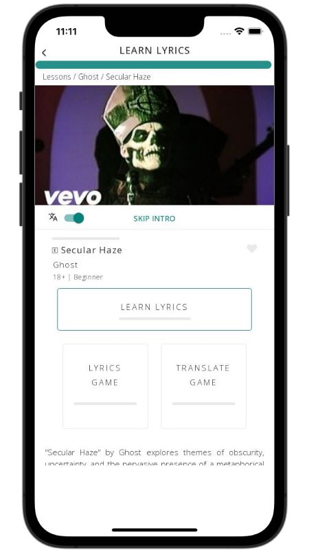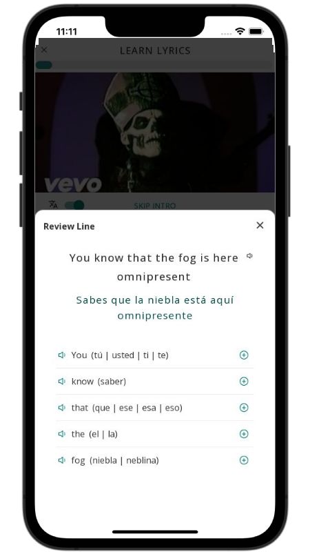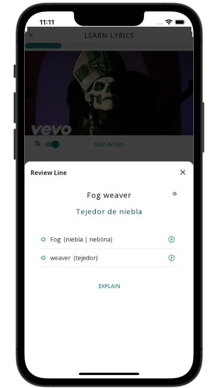 In addition to reading lyric translations, you can now learn English with music and lyrics from your favorite artists.