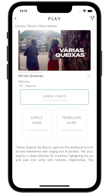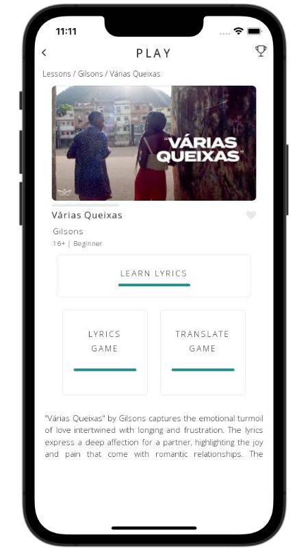 In addition to reading lyric translations, you can now learn Portuguese with music and lyrics from your favorite artists.