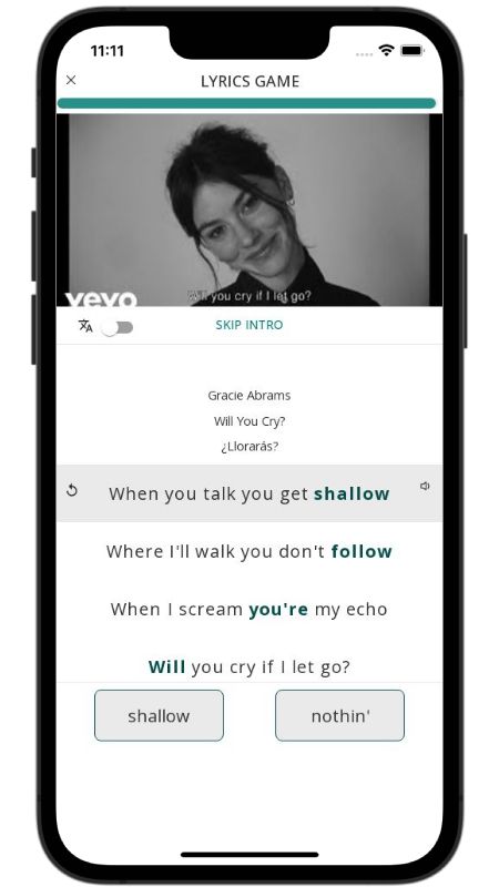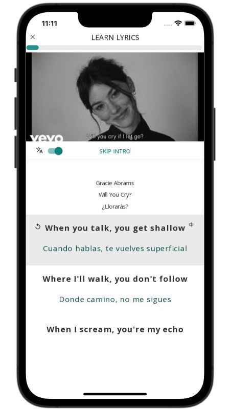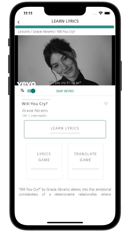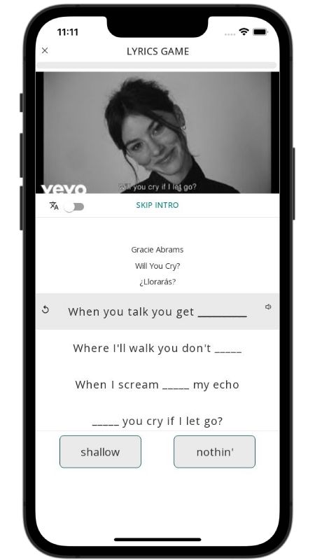 In addition to reading lyric translations, you can now learn English with music and lyrics from your favorite artists.