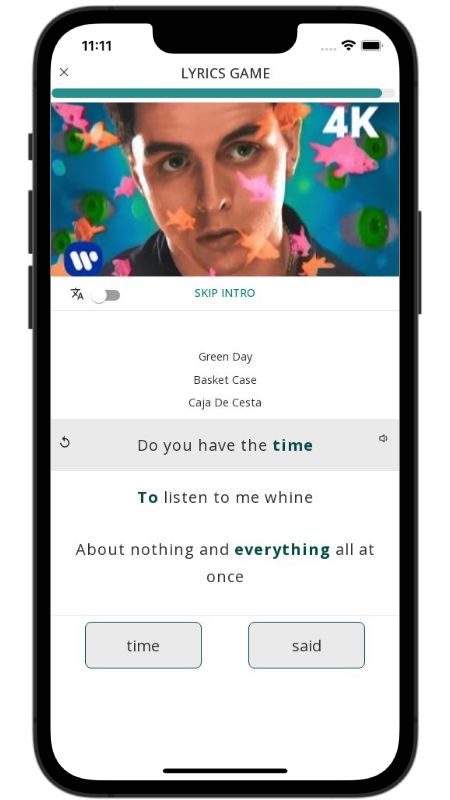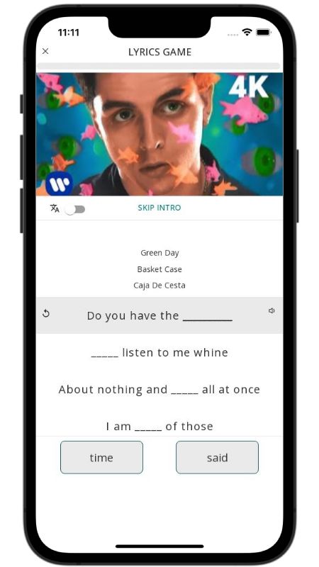 In addition to reading lyric translations, you can now learn English with music and lyrics from your favorite artists.