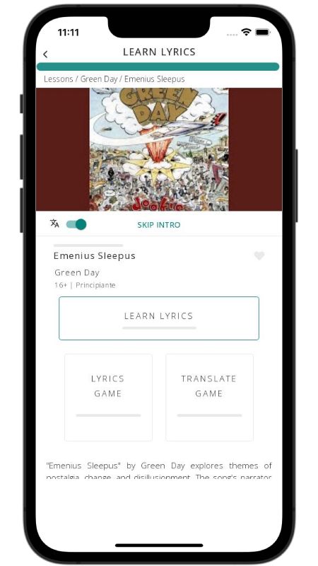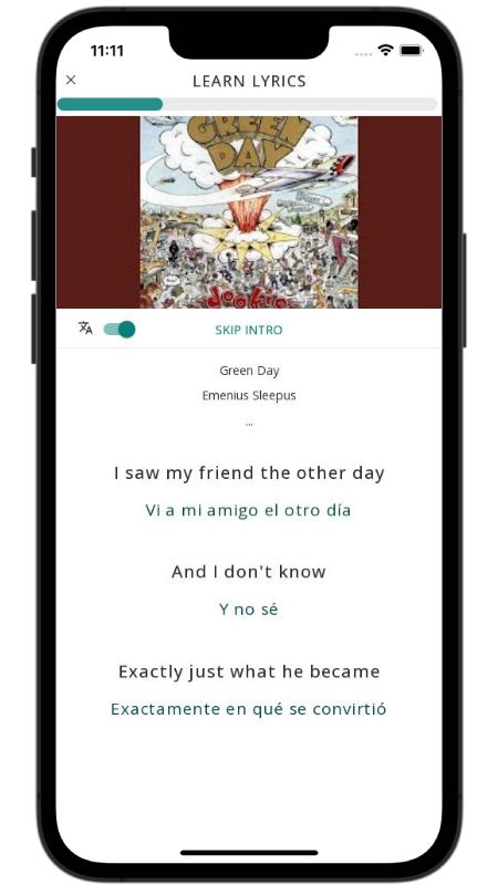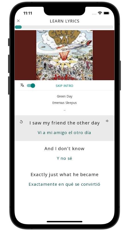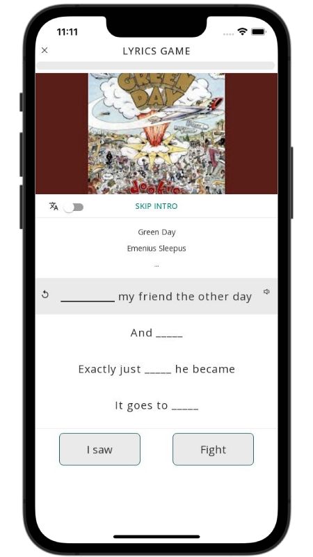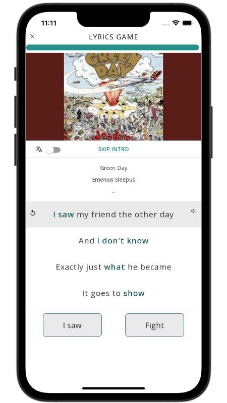 In addition to reading lyric translations, you can now learn English with music and lyrics from your favorite artists.