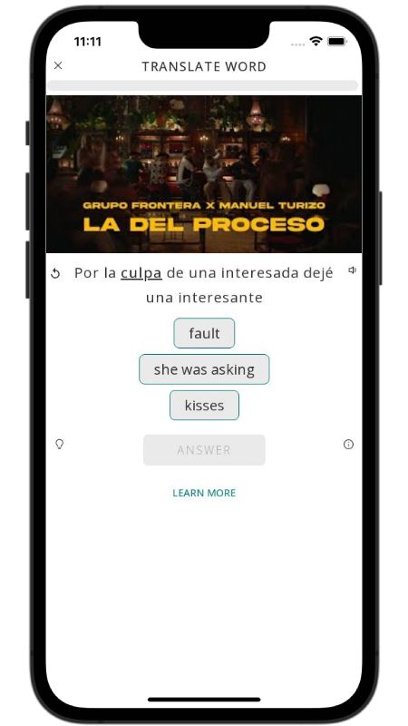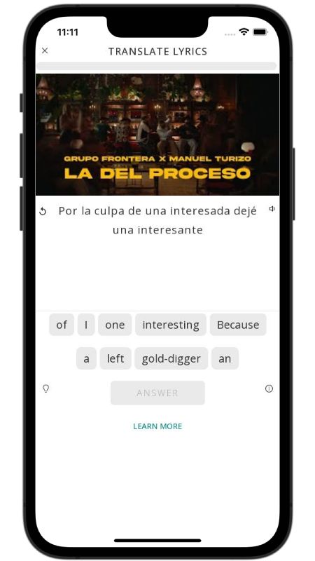 In addition to reading lyric translations, you can now learn Spanish with music and lyrics from your favorite artists.