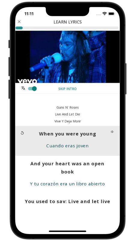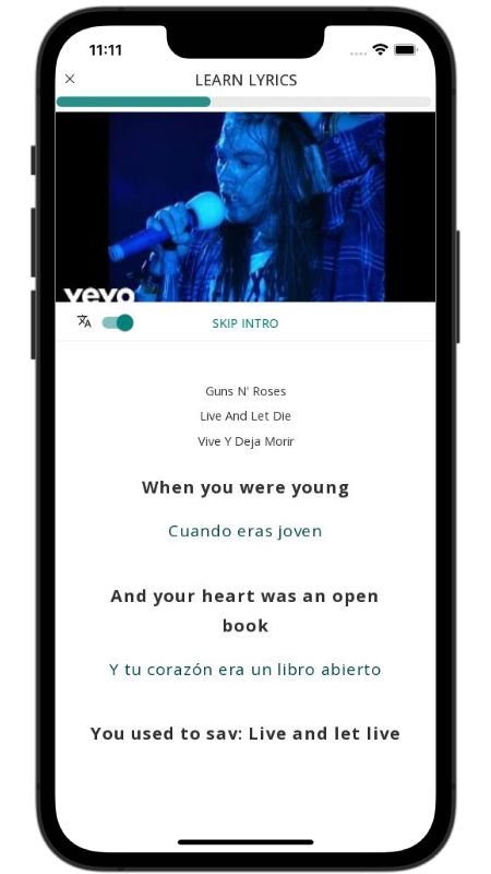 In addition to reading lyric translations, you can now learn English with music and lyrics from your favorite artists.