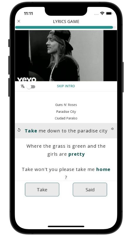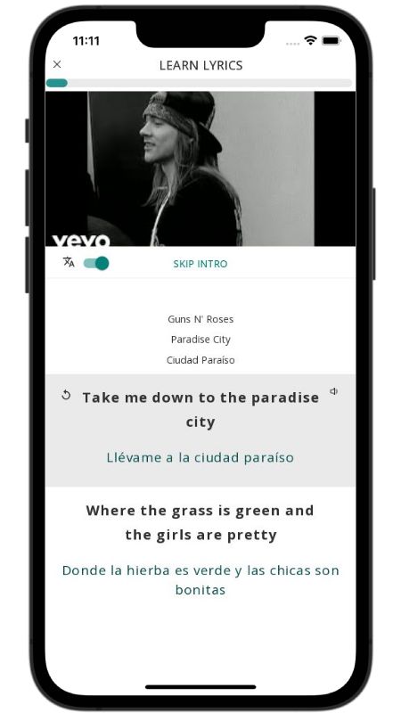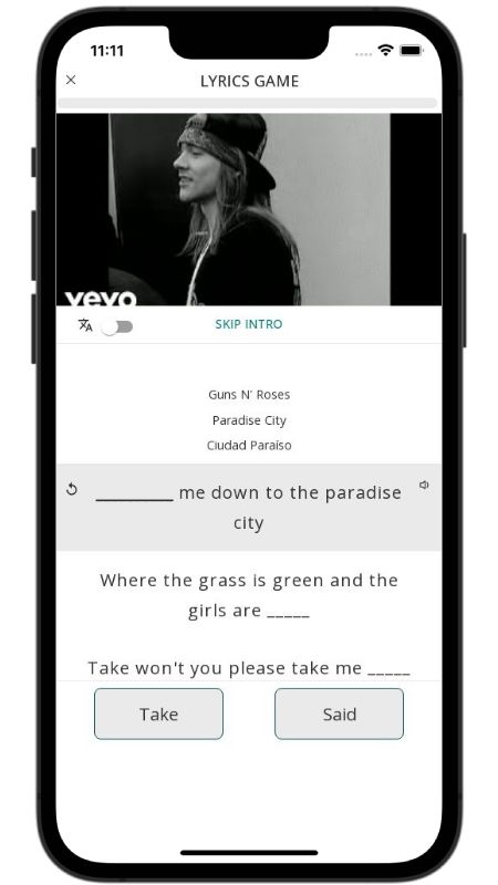 In addition to reading lyric translations, you can now learn English with music and lyrics from your favorite artists.