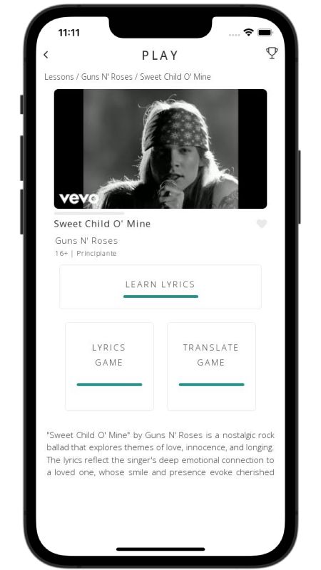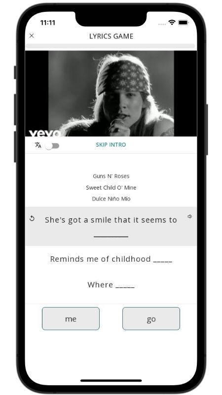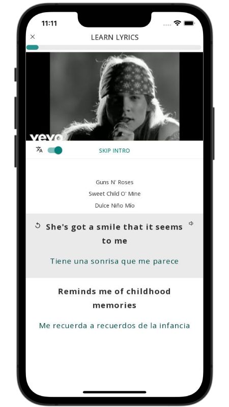 In addition to reading lyric translations, you can now learn English with music and lyrics from your favorite artists.