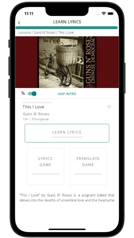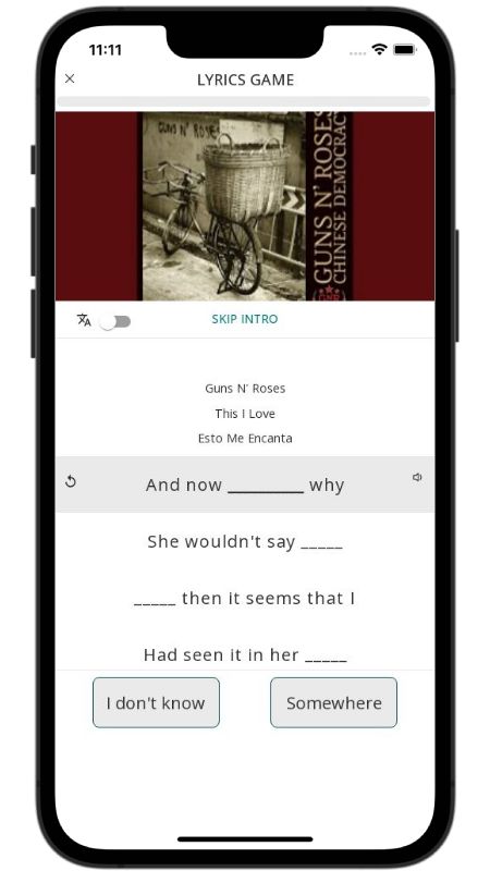 In addition to reading lyric translations, you can now learn English with music and lyrics from your favorite artists.