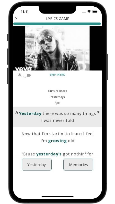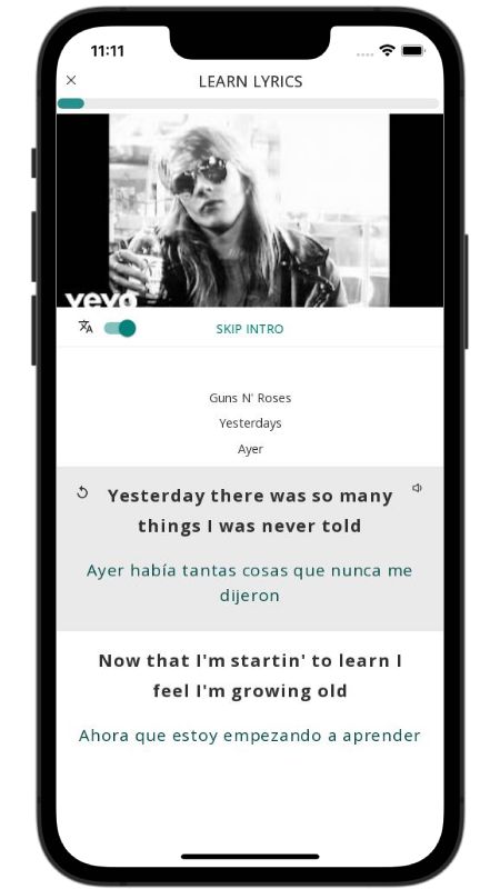 In addition to reading lyric translations, you can now learn English with music and lyrics from your favorite artists.