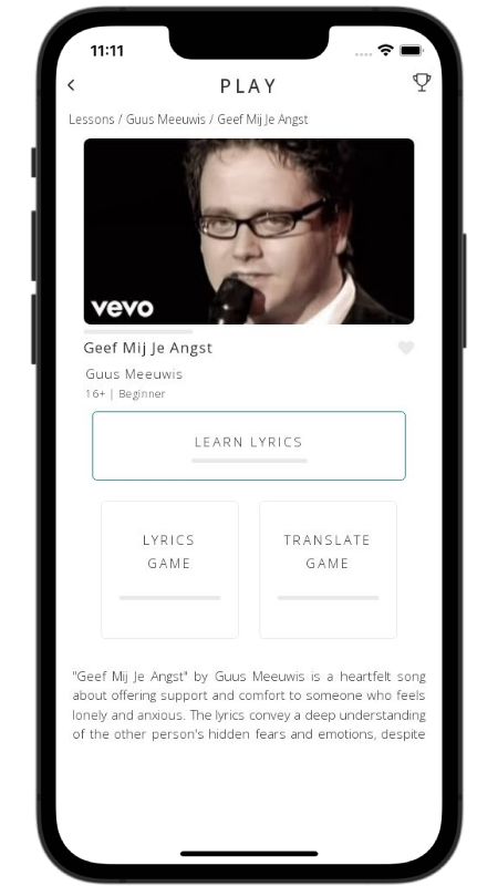 In addition to reading lyric translations, you can now learn Dutch with music and lyrics from your favorite artists.