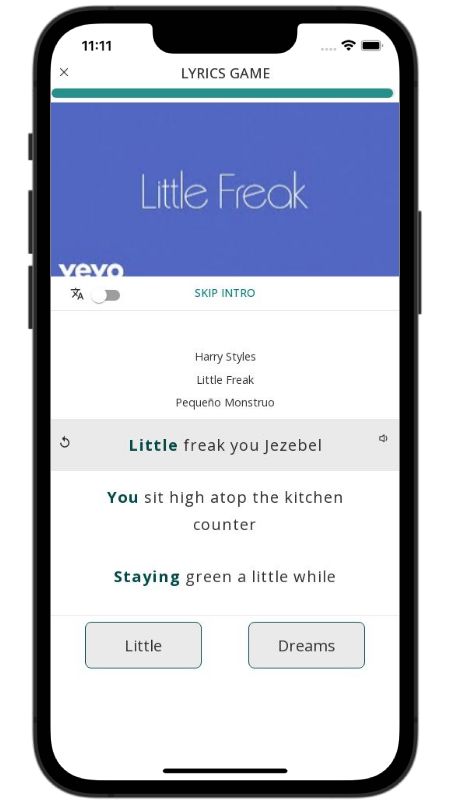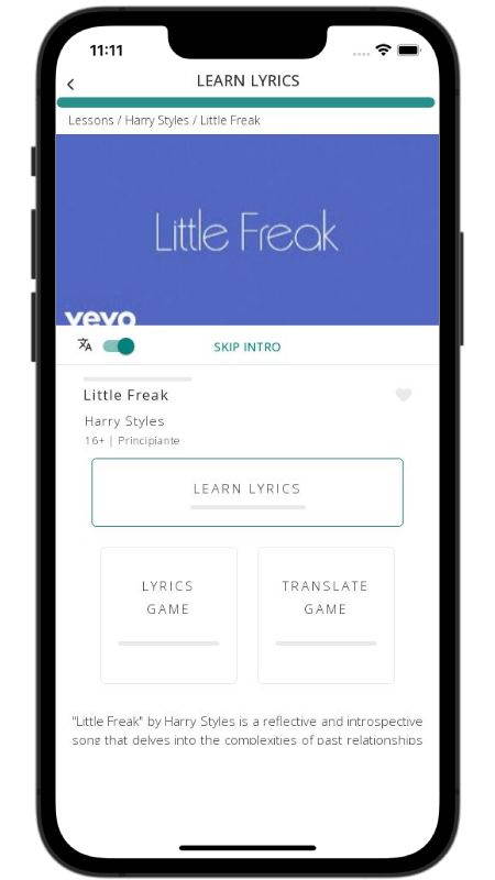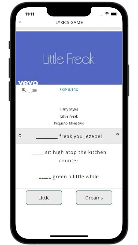 In addition to reading lyric translations, you can now learn English with music and lyrics from your favorite artists.