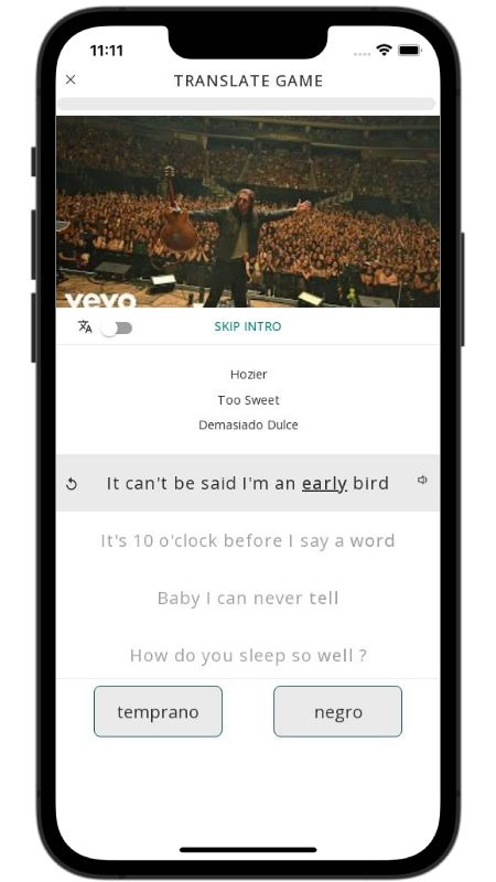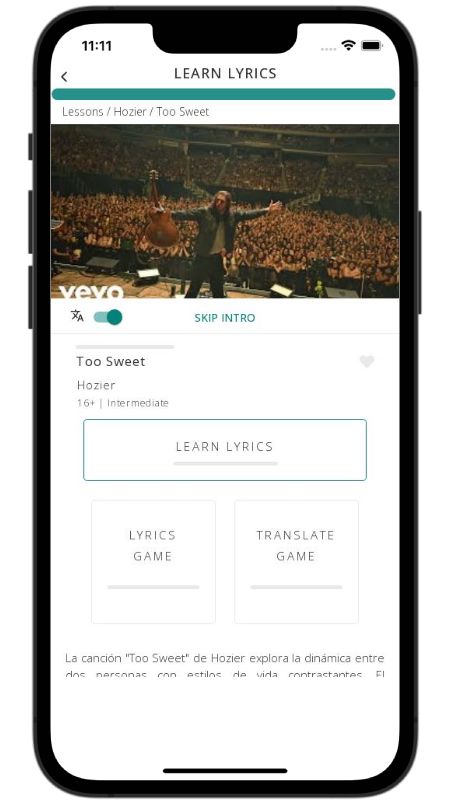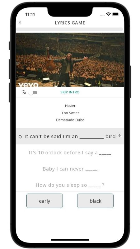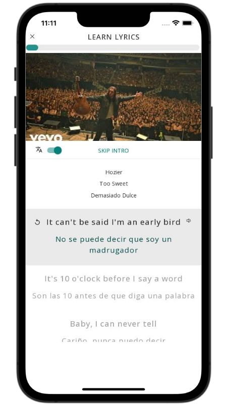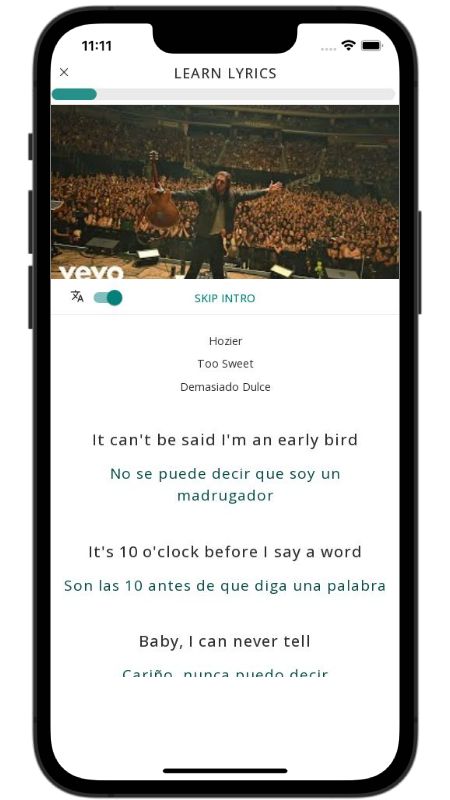 In addition to reading lyric translations, you can now learn English with music and lyrics from your favorite artists.