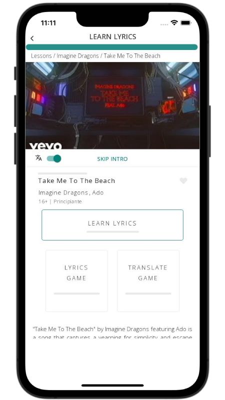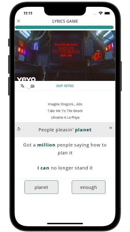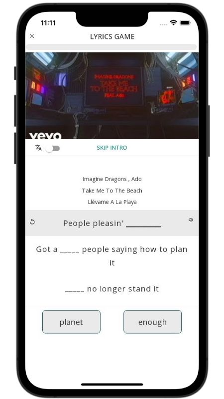 In addition to reading lyric translations, you can now learn English with music and lyrics from your favorite artists.