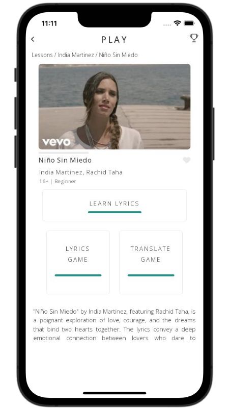 In addition to reading lyric translations, you can now learn Spanish with music and lyrics from your favorite artists.