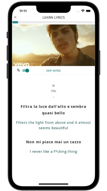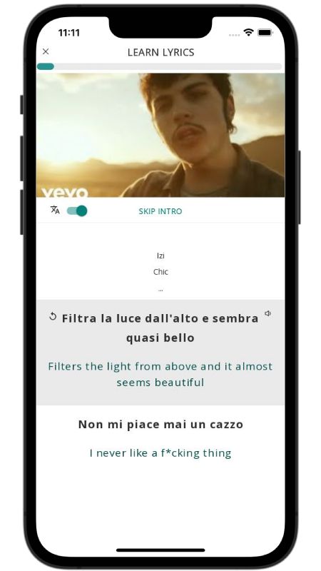 In addition to reading lyric translations, you can now learn Italian with music and lyrics from your favorite artists.