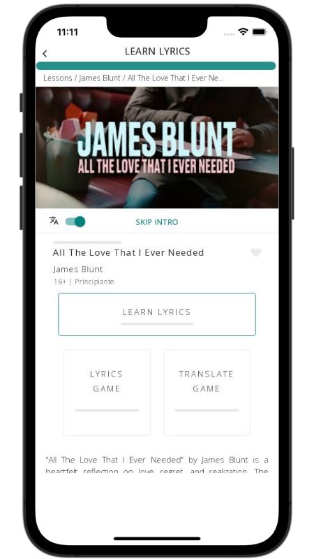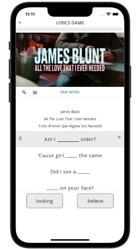 In addition to reading lyric translations, you can now learn English with music and lyrics from your favorite artists.