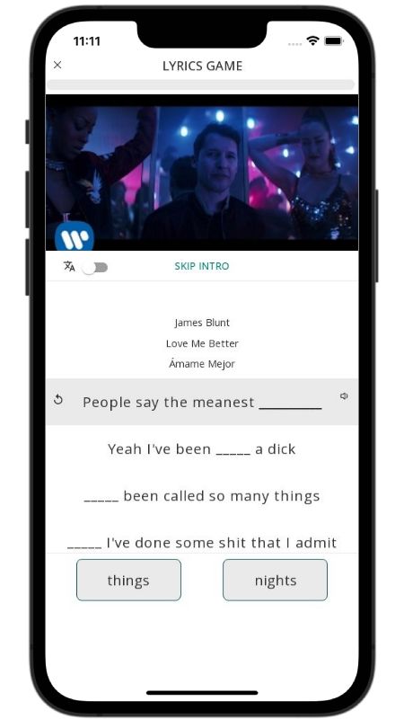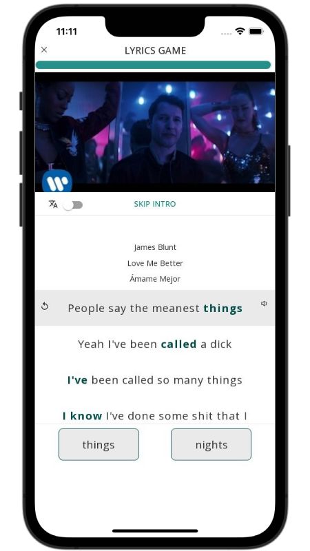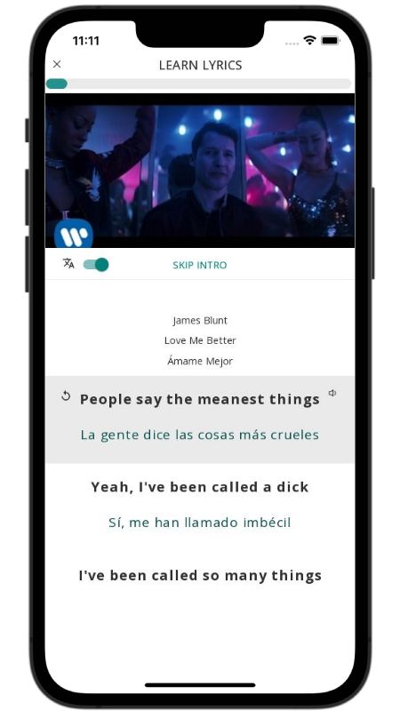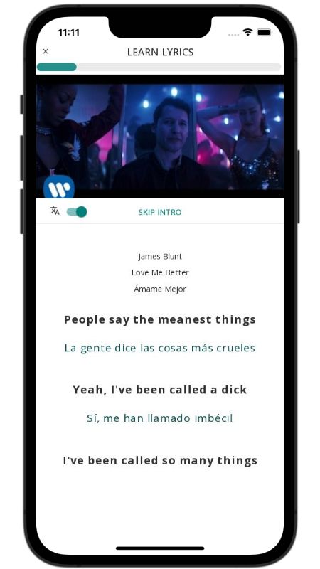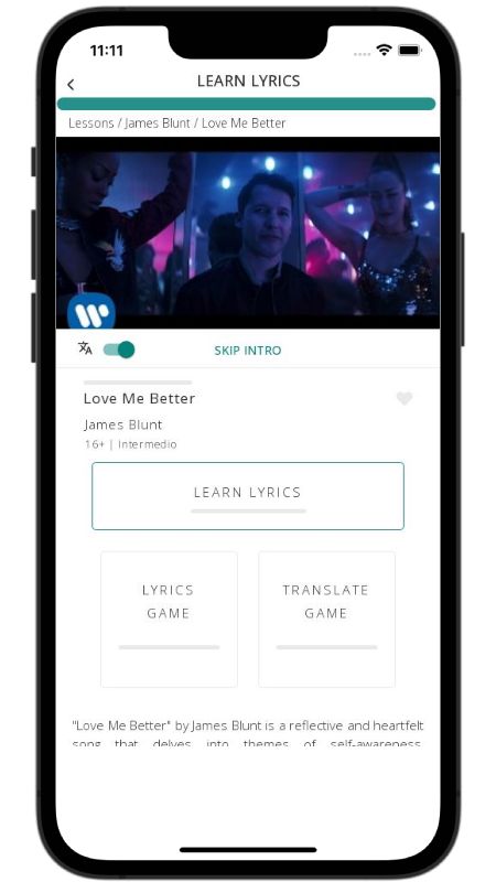 In addition to reading lyric translations, you can now learn English with music and lyrics from your favorite artists.