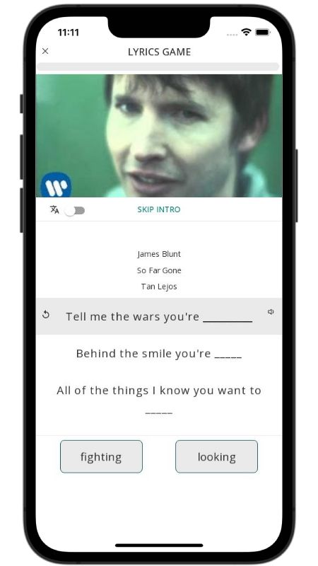 In addition to reading lyric translations, you can now learn English with music and lyrics from your favorite artists.
