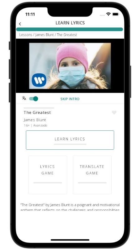 In addition to reading lyric translations, you can now learn English with music and lyrics from your favorite artists.