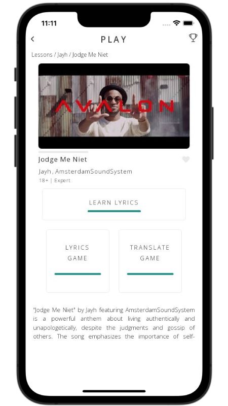 In addition to reading lyric translations, you can now learn Dutch with music and lyrics from your favorite artists.
