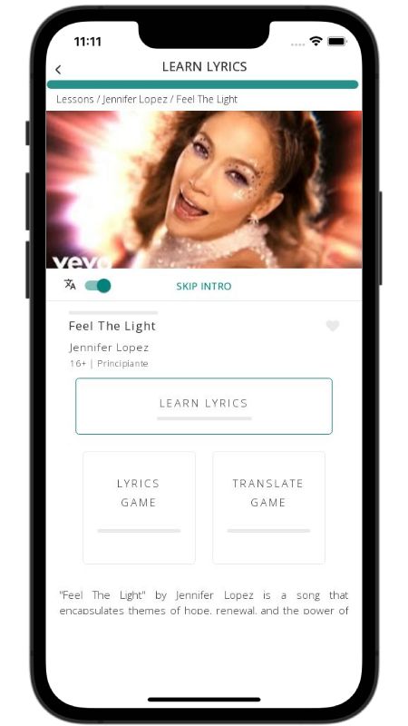 In addition to reading lyric translations, you can now learn English with music and lyrics from your favorite artists.
