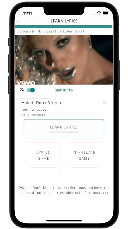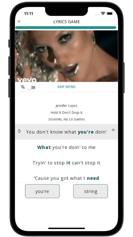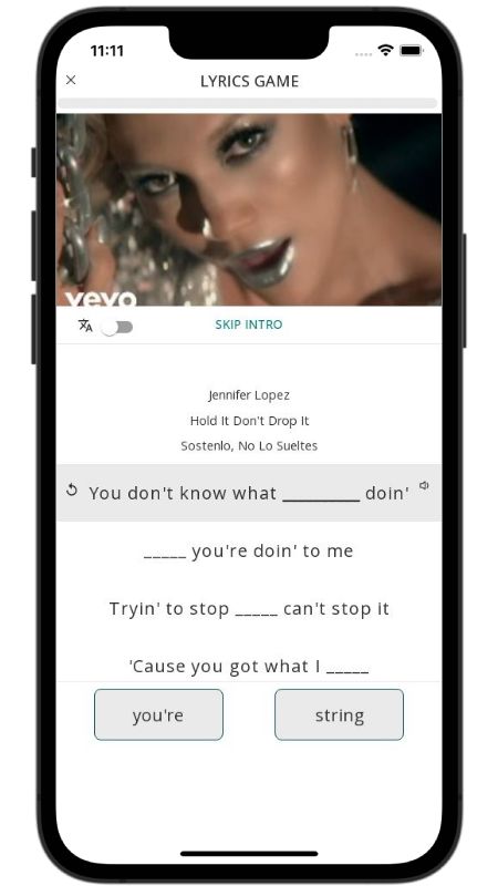 In addition to reading lyric translations, you can now learn English with music and lyrics from your favorite artists.