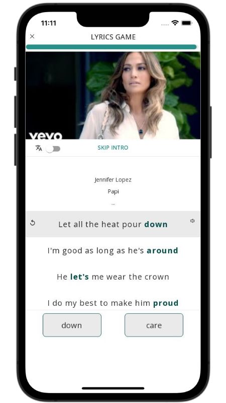 In addition to reading lyric translations, you can now learn English with music and lyrics from your favorite artists.
