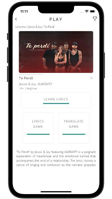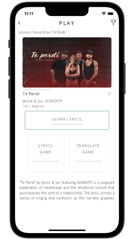 In addition to reading lyric translations, you can now learn Spanish with music and lyrics from your favorite artists.