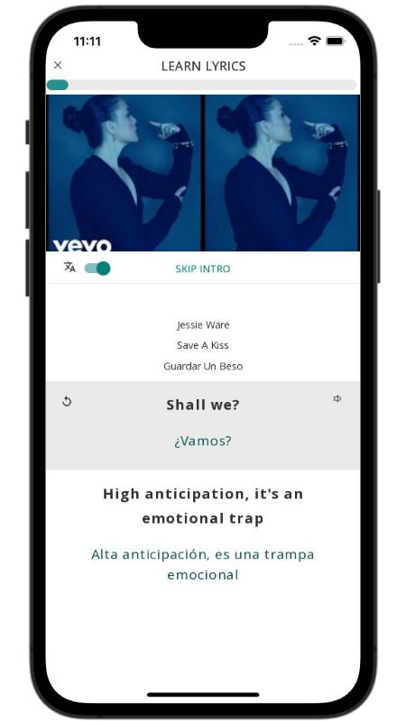 In addition to reading lyric translations, you can now learn English with music and lyrics from your favorite artists.
