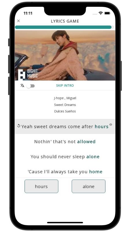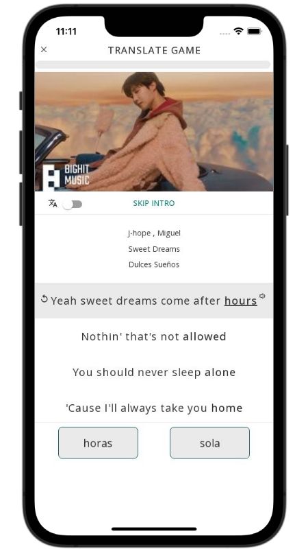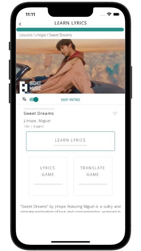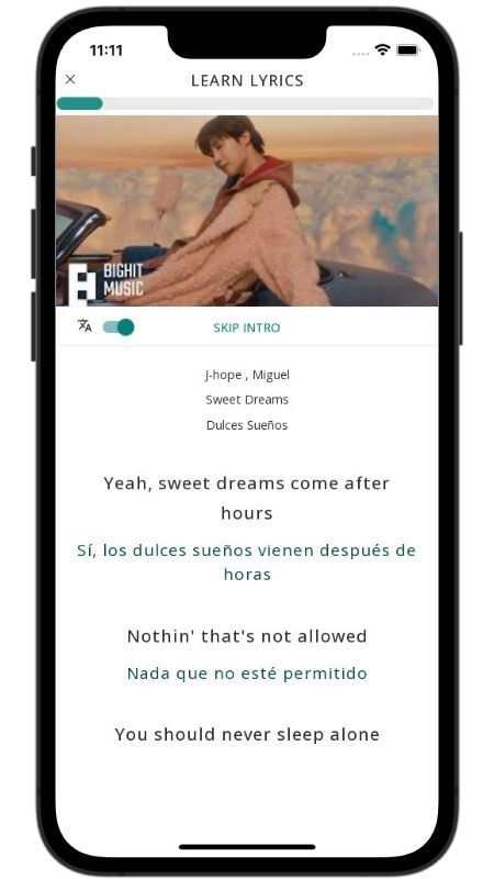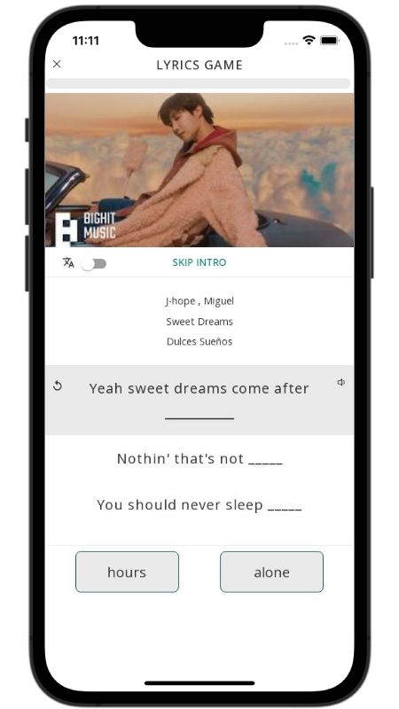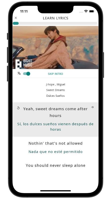 In addition to reading lyric translations, you can now learn English with music and lyrics from your favorite artists.
