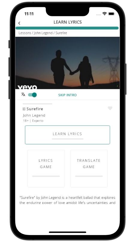 In addition to reading lyric translations, you can now learn English with music and lyrics from your favorite artists.