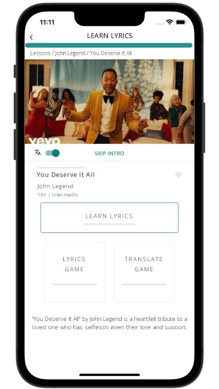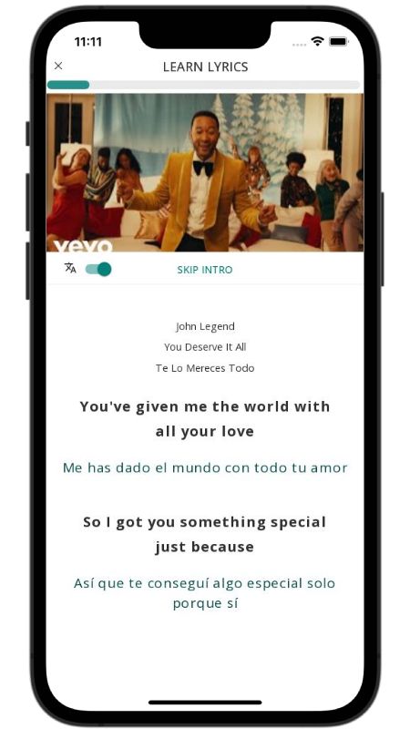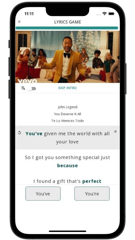 In addition to reading lyric translations, you can now learn English with music and lyrics from your favorite artists.