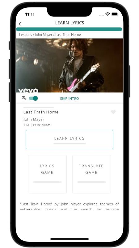In addition to reading lyric translations, you can now learn English with music and lyrics from your favorite artists.
