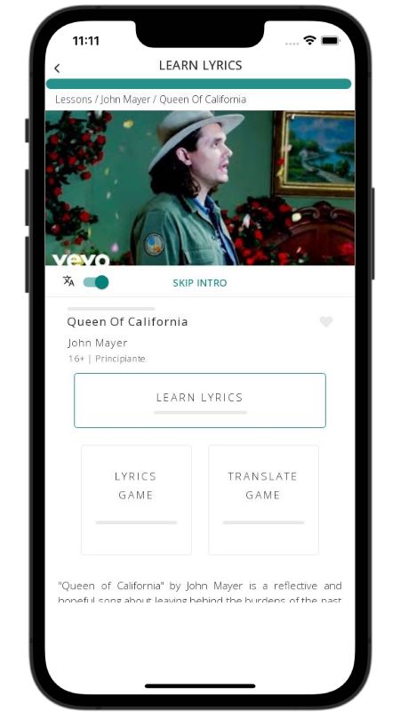 In addition to reading lyric translations, you can now learn English with music and lyrics from your favorite artists.