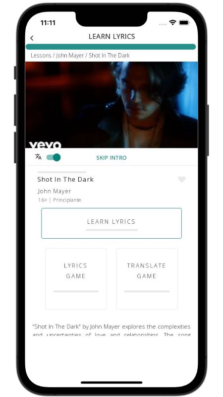 In addition to reading lyric translations, you can now learn English with music and lyrics from your favorite artists.