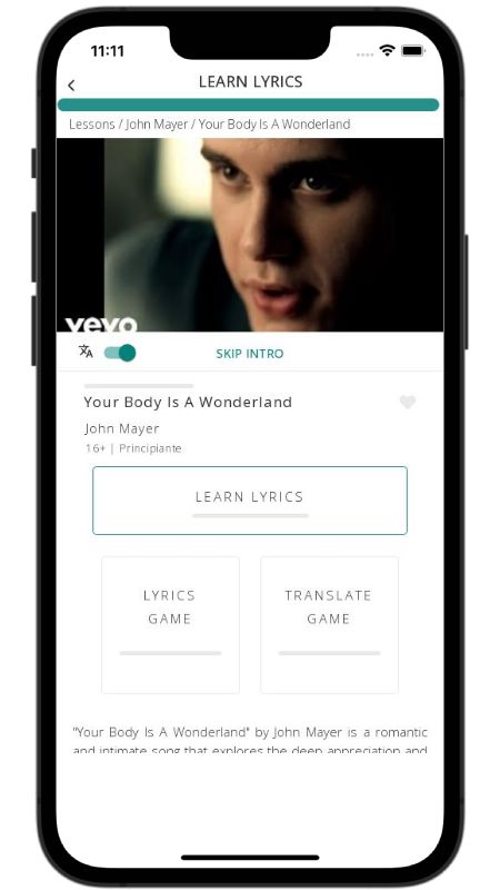 In addition to reading lyric translations, you can now learn English with music and lyrics from your favorite artists.