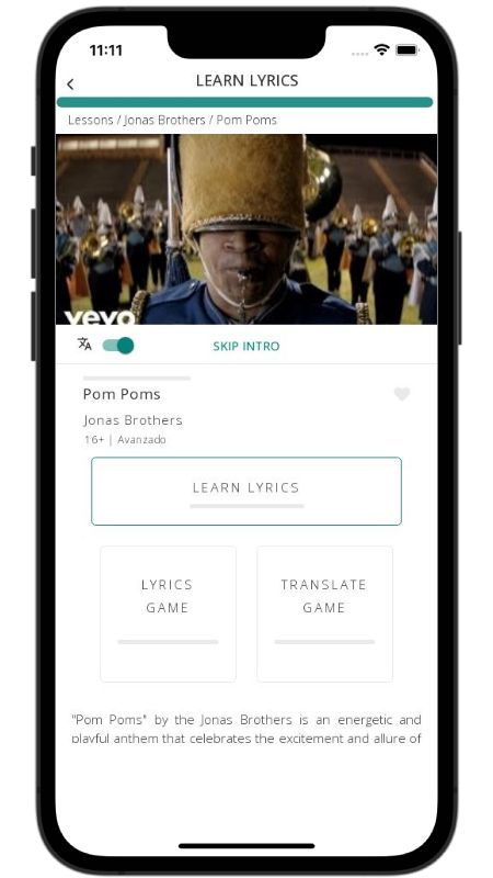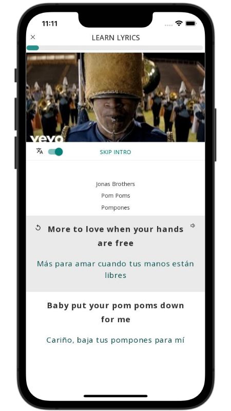 In addition to reading lyric translations, you can now learn English with music and lyrics from your favorite artists.