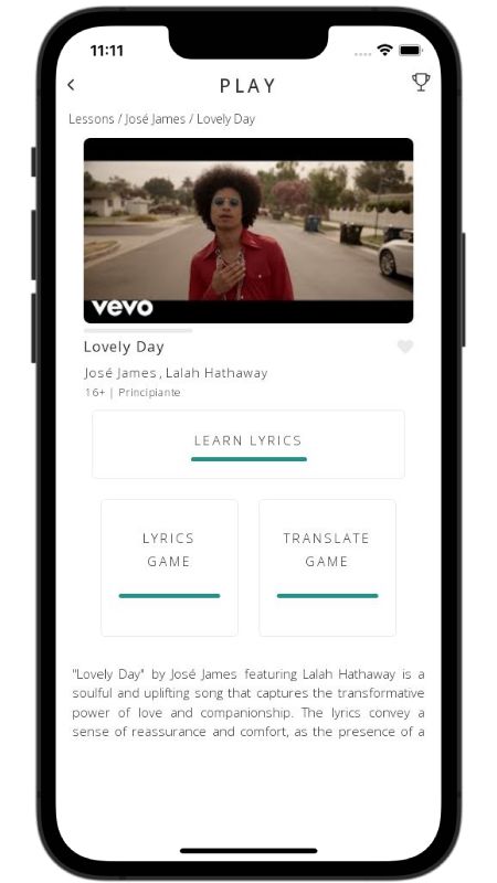 In addition to reading lyric translations, you can now learn English with music and lyrics from your favorite artists.