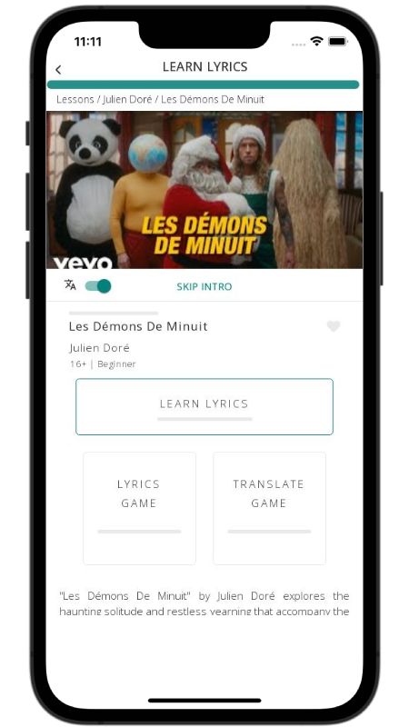 In addition to reading lyric translations, you can now learn French with music and lyrics from your favorite artists.