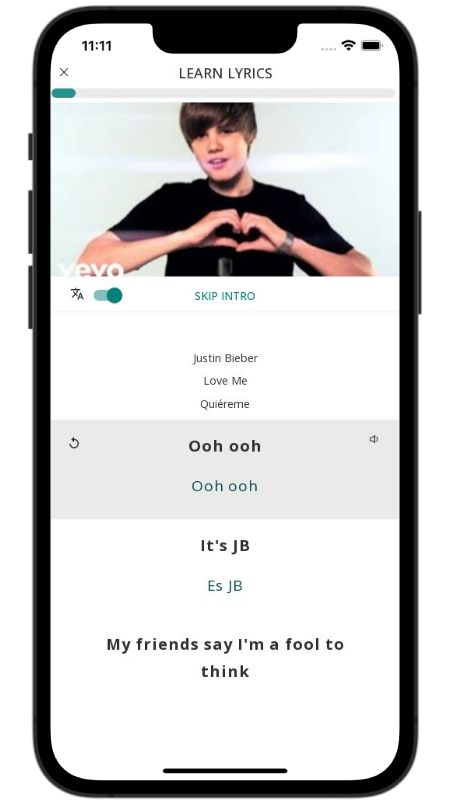 In addition to reading lyric translations, you can now learn English with music and lyrics from your favorite artists.